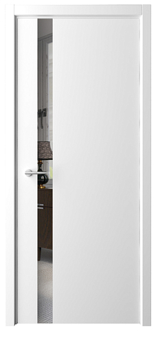 Дверь Геометрия-5 ширина 80 см Белый Эмаль Стекло белое кромка В цвет полотна в Черепанове