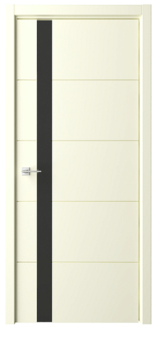 Дверь Геометрия-7 ширина 80 см Слоновая кость Эмаль Стекло черное кромка В цвет полотна в Черепанове